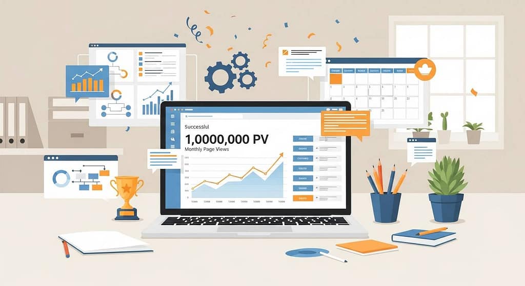 皆さん、こんにちは。インターネットメディア業界において、月間100万PVという大台を達成することは、多くのブロガーやメディア運営者にとって憧れの目標ではないでしょうか。特に近年では、AIツールの発展により、プログラミングの知識がなくても高品質な... -